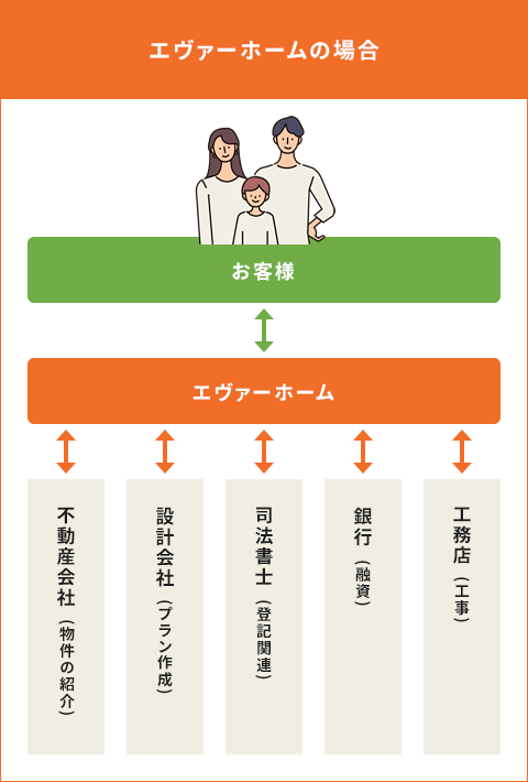 エヴァーホームなら不動産会社と住宅会社を往復する必要はありません。