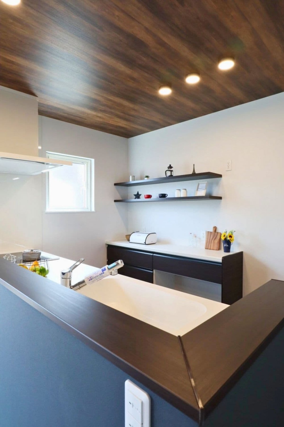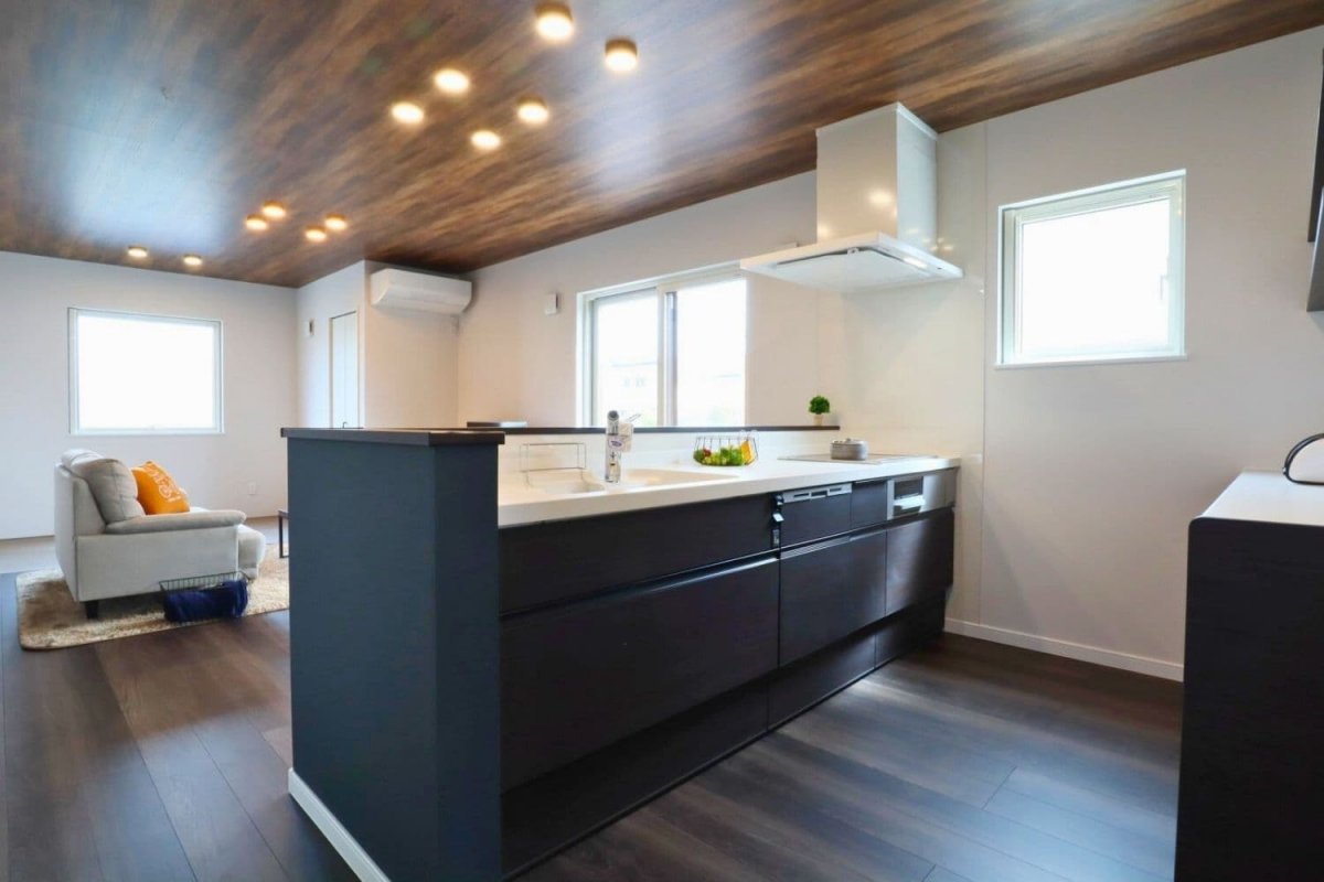 リビング・ダイニングが一望できる対面キッチン。料理をしながら家族とコミュニケーションがとれます。