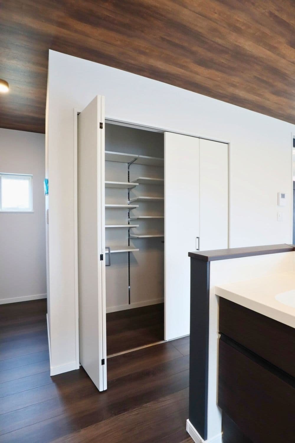 キッチン横にある収納スペースは、パントリーやダイニング収納として活用できます。