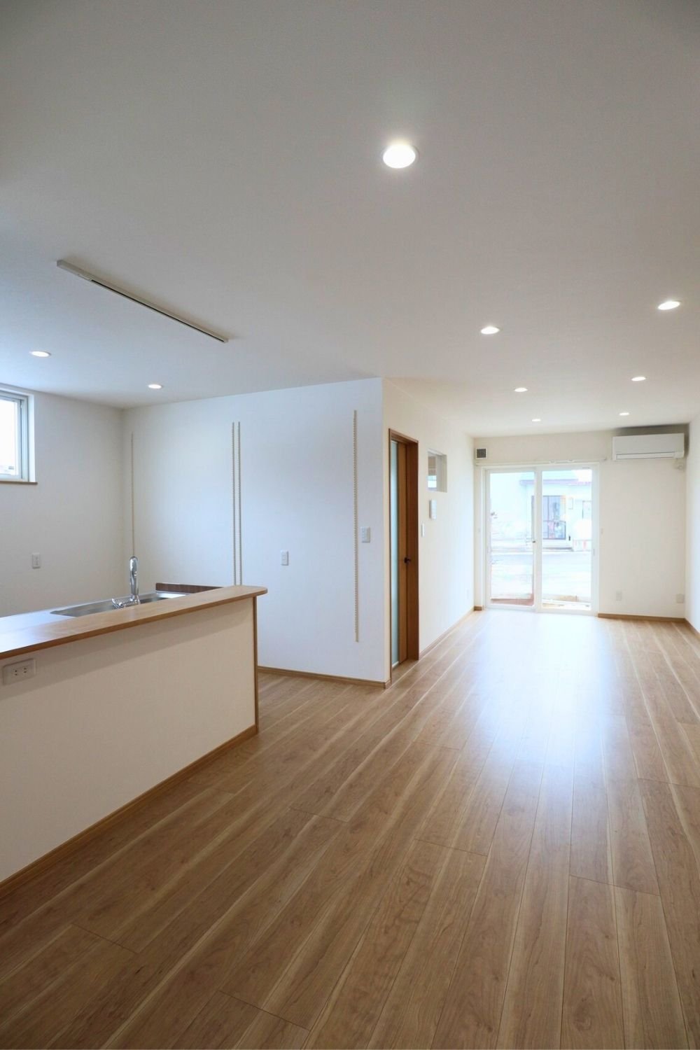 解放感にこだわったリビングは、ダウンライトで天井まわりをすっきりと。