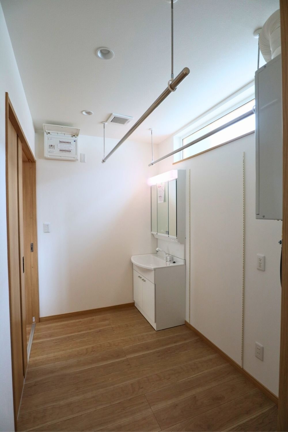 3帖の広さを活かした、家事効率の上がる洗面脱衣室。