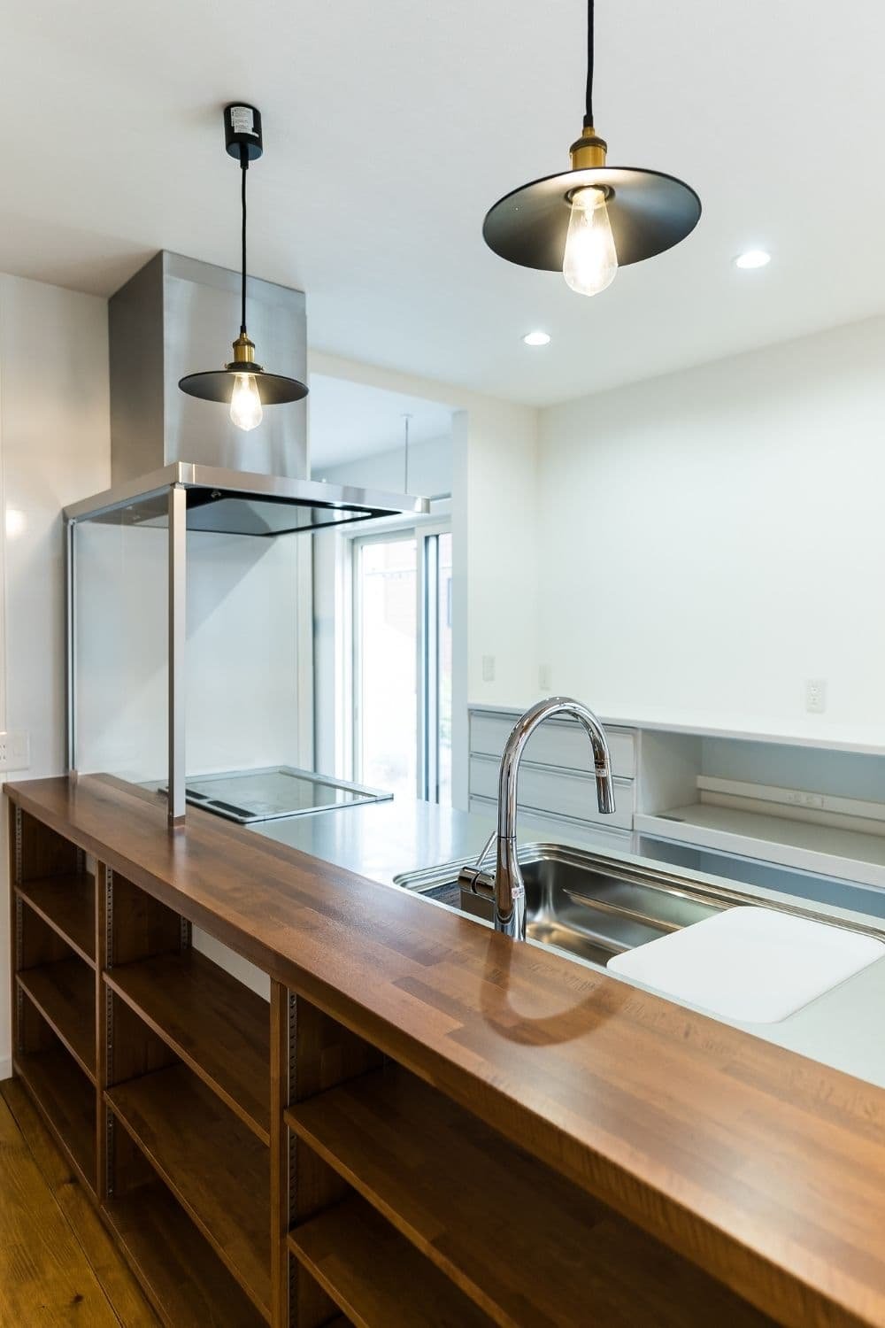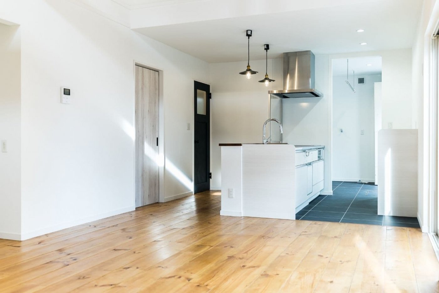 リビングや個室は無垢フロアにし キッチンなどの水回りの床材を変えるなど 足元にもこだわりました。