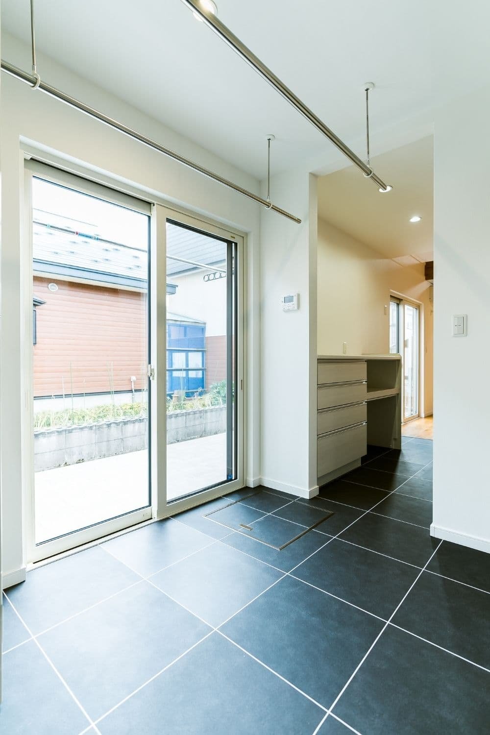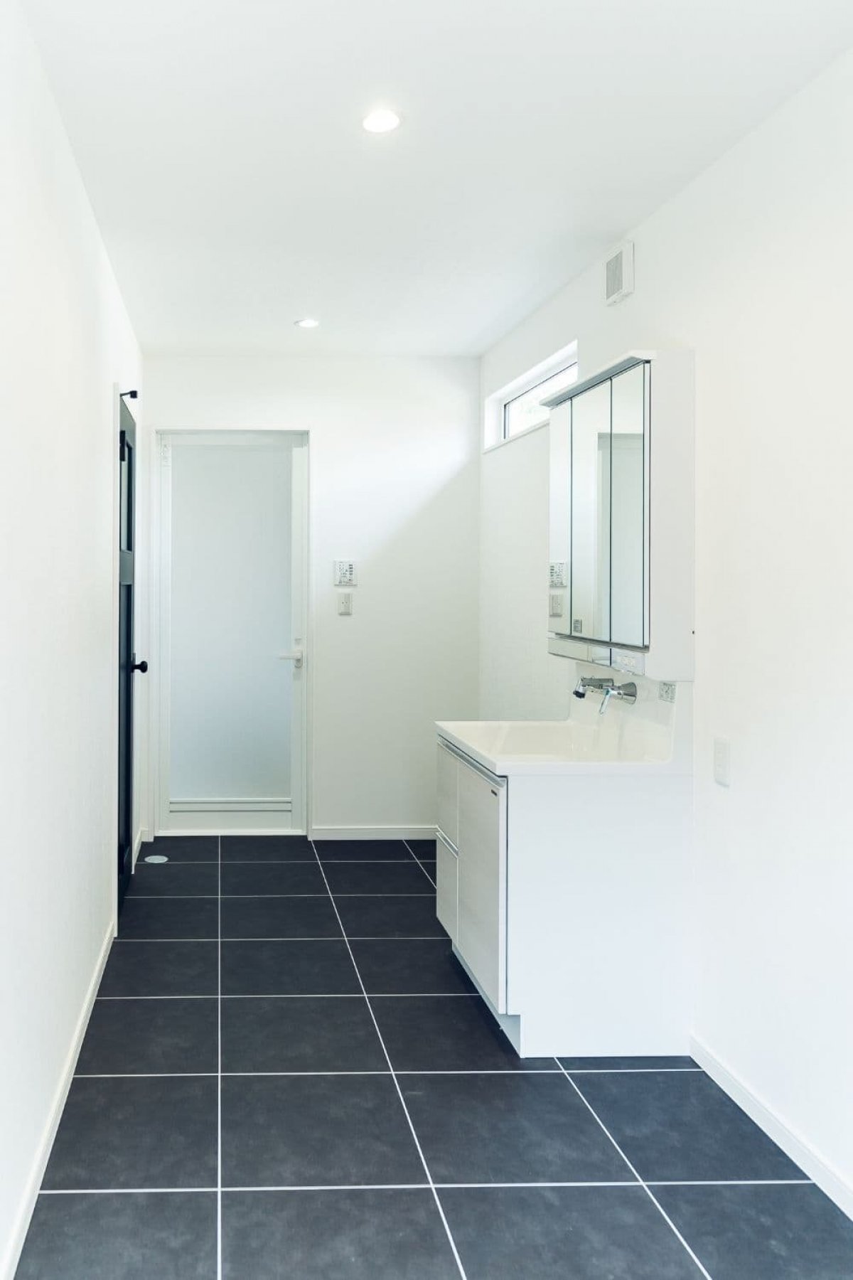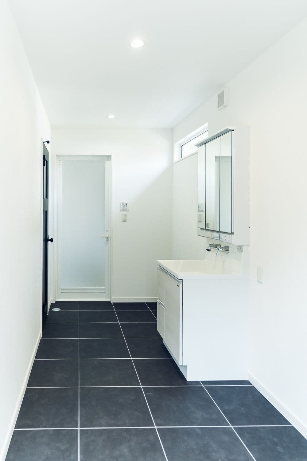 キッチンから家事室兼洗面室へと抜け、玄関へと抜ける 家事動線抜群の回遊式の作りになっています。