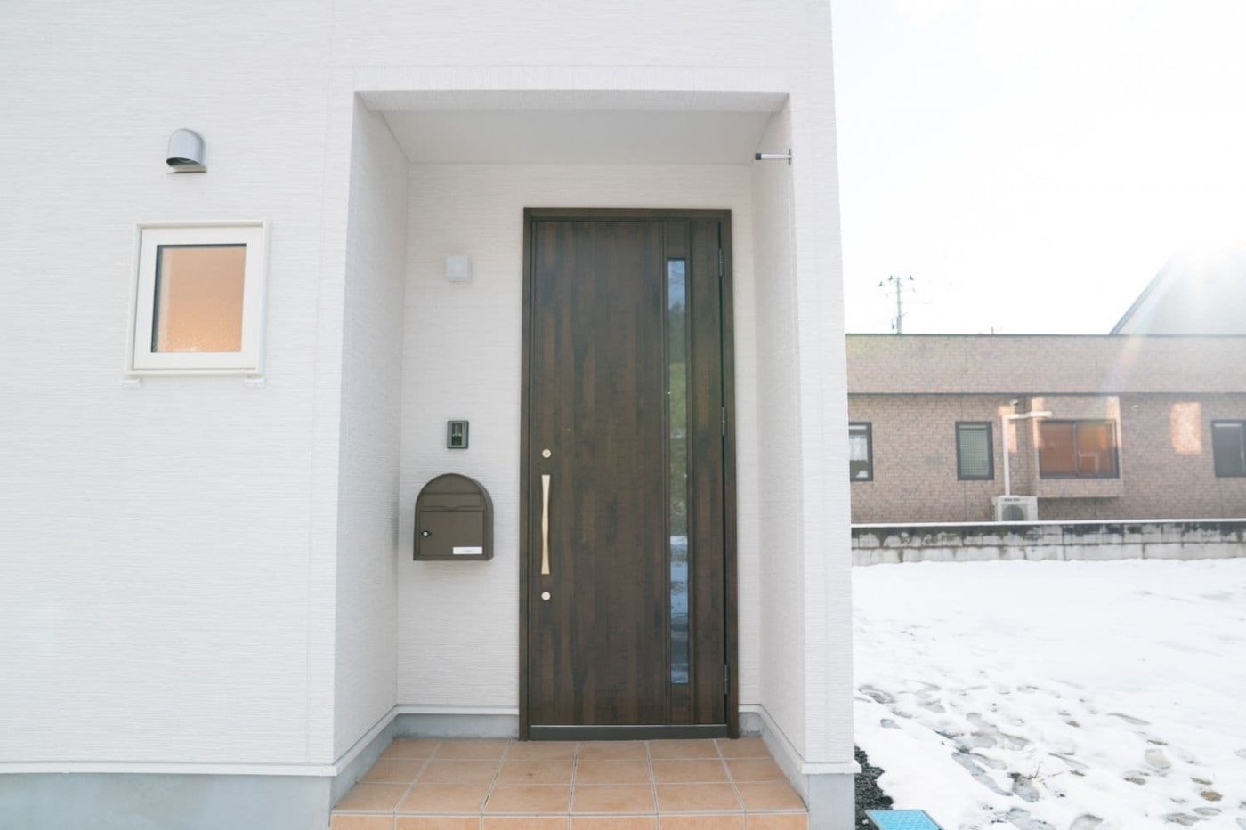 新興住宅街に映えるデザインの白を基調としたツートンカラーのお宅です。